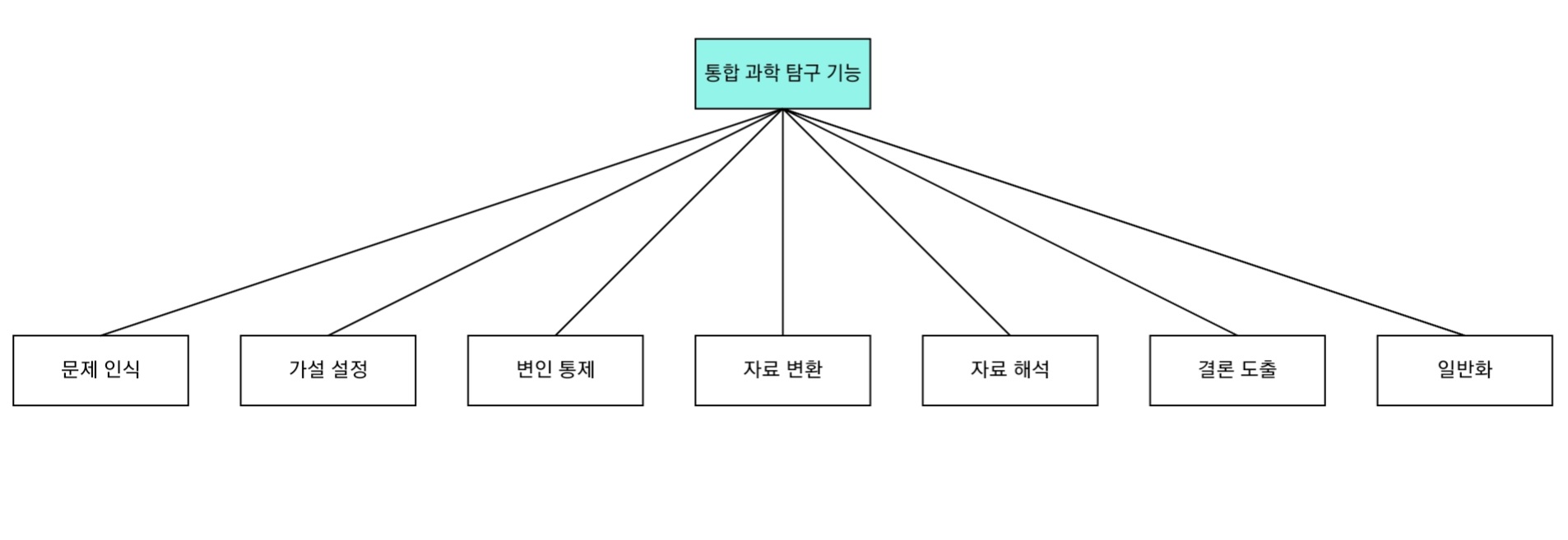 통합 과학 탐구 기능은 과학 탐구 과정에 걸쳐 나타나는 기능으로 문제 인식, 가설 설정, 변인 통제, 자료 변환, 자료 해석, 결론 도출, 일반화까지 모두 7가지 기능으로 이루어져 있습니다. 2015/2022개정 과학과 교육과정 모두 통합 과학 탐구 기능이 적극 반영되어 있습니다.
