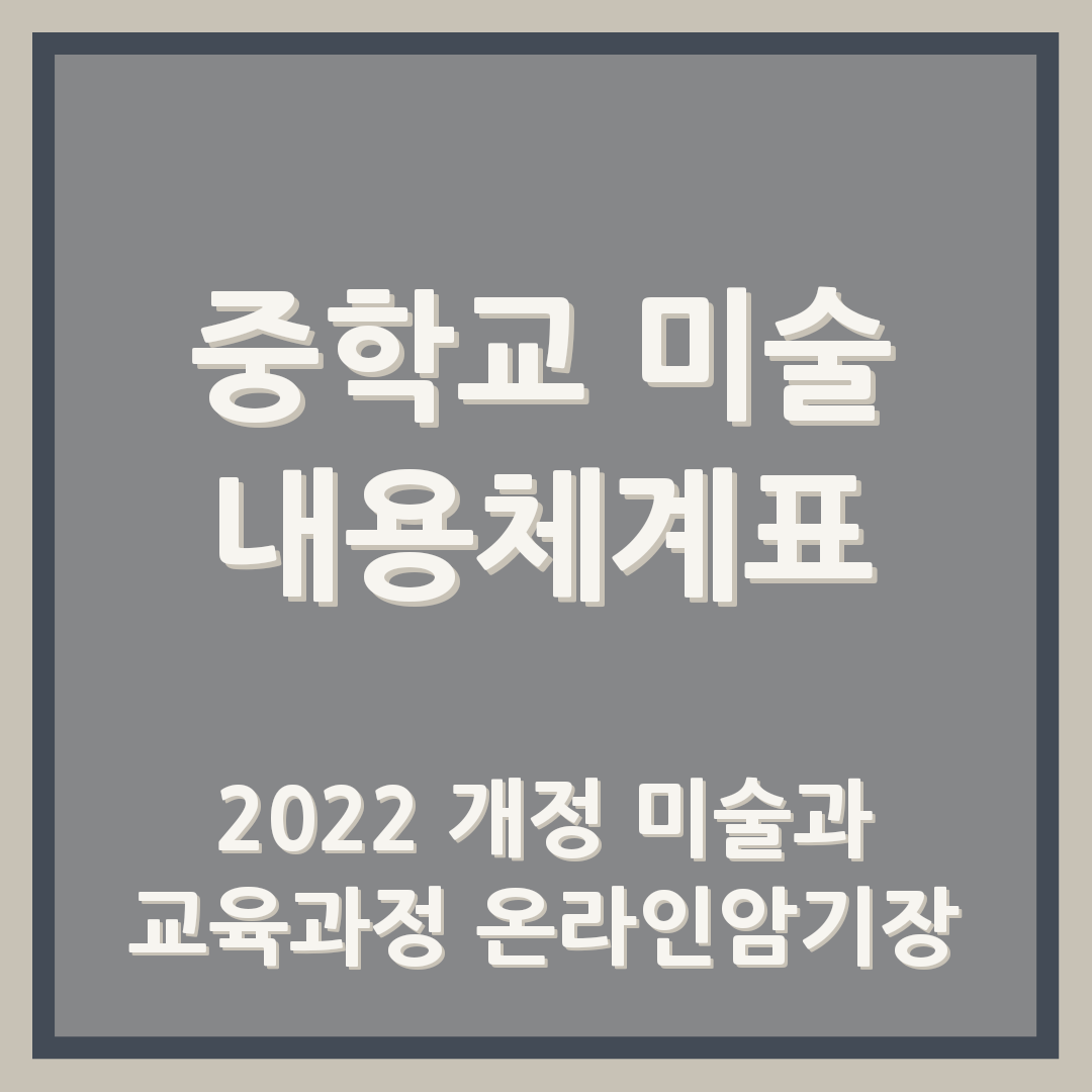 | [미술임용/2022개정 교육과정] 중학교 미술과 성취기준 온라인암기장 (1) | 2024.07.24 |
