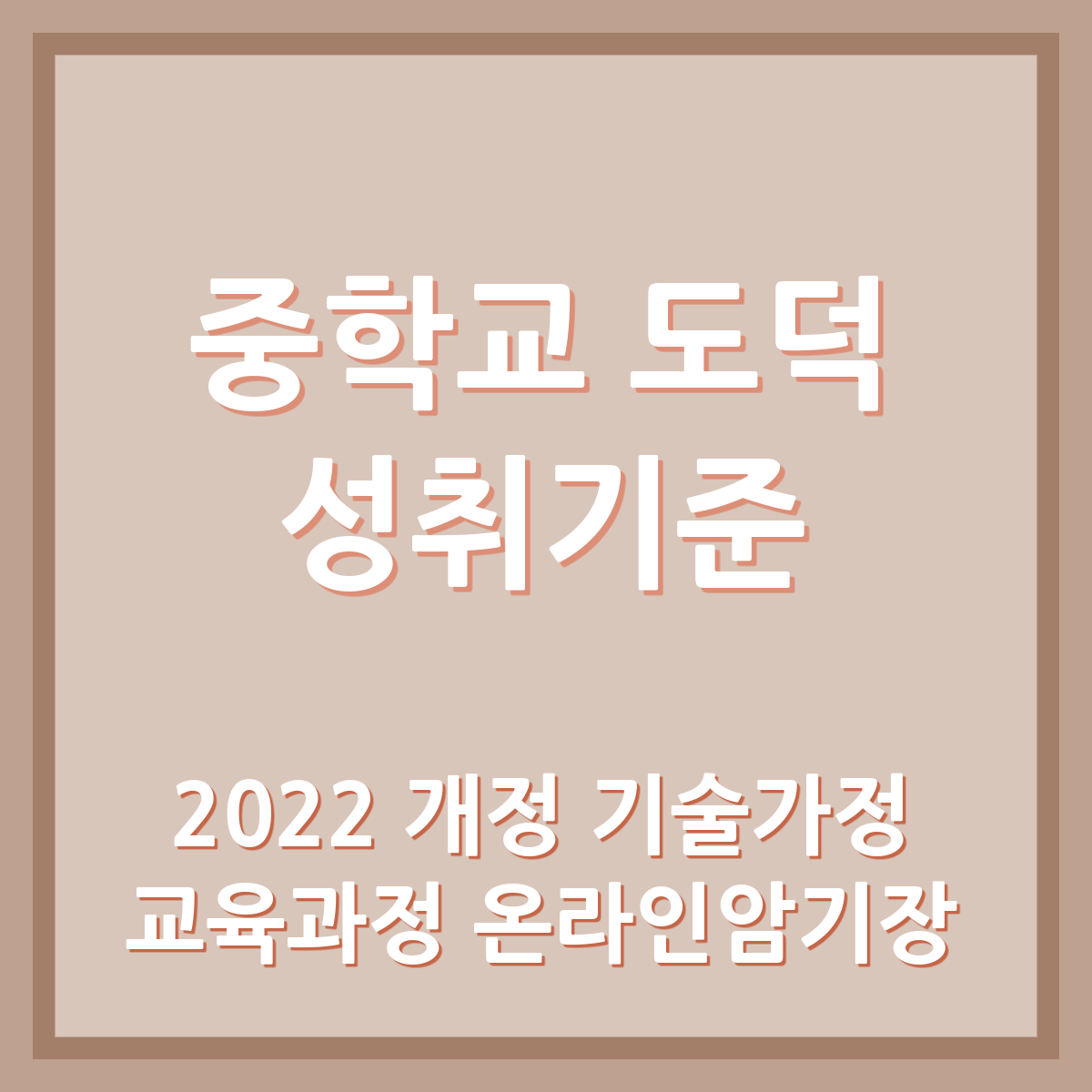 참고 이 글은 2022개정 교육과정 중 '중학교 도덕'과의 성취기준을 온라인암기장화한 것입니다. 내용은 ncic 국가교육과정 정보센터를 참고하였습니다. 중등도덕임용을 준비하시는 선생님들 학습에 도움이 되길 바랍니다.