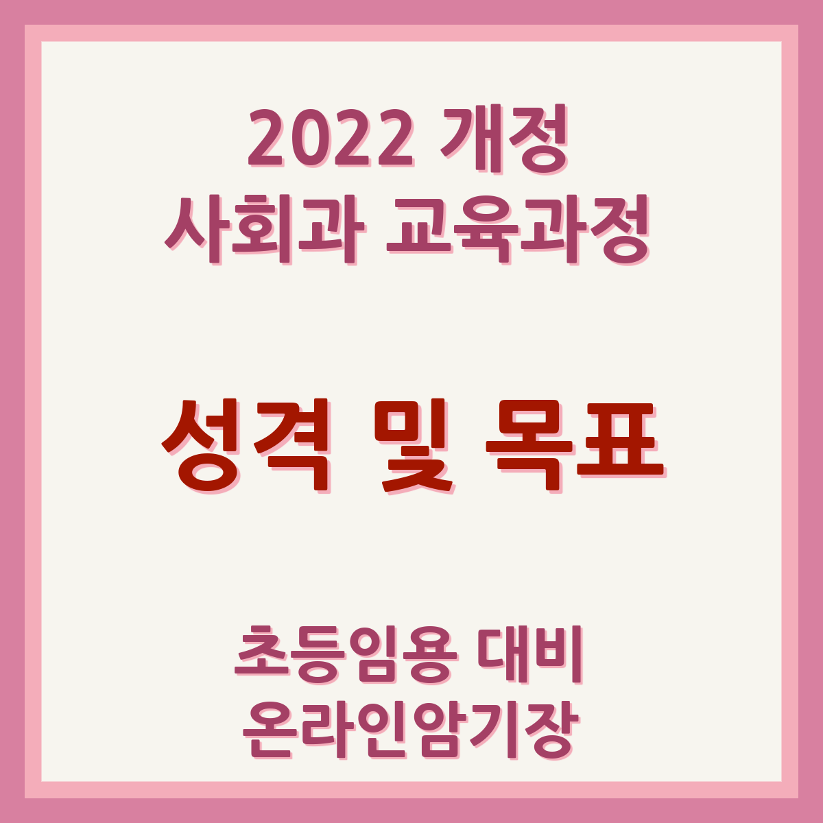 2022 개정 사회과 교육과정에 제시된 성격 및 목표 항을 다루고 있습니다. 교과 역량으로 무엇을 두고 있는지, 어떤 목표를 두고 있는지 집중적으로 점검해봅시다. 온라인암기장은 개괄식으로 작성하였습니다.