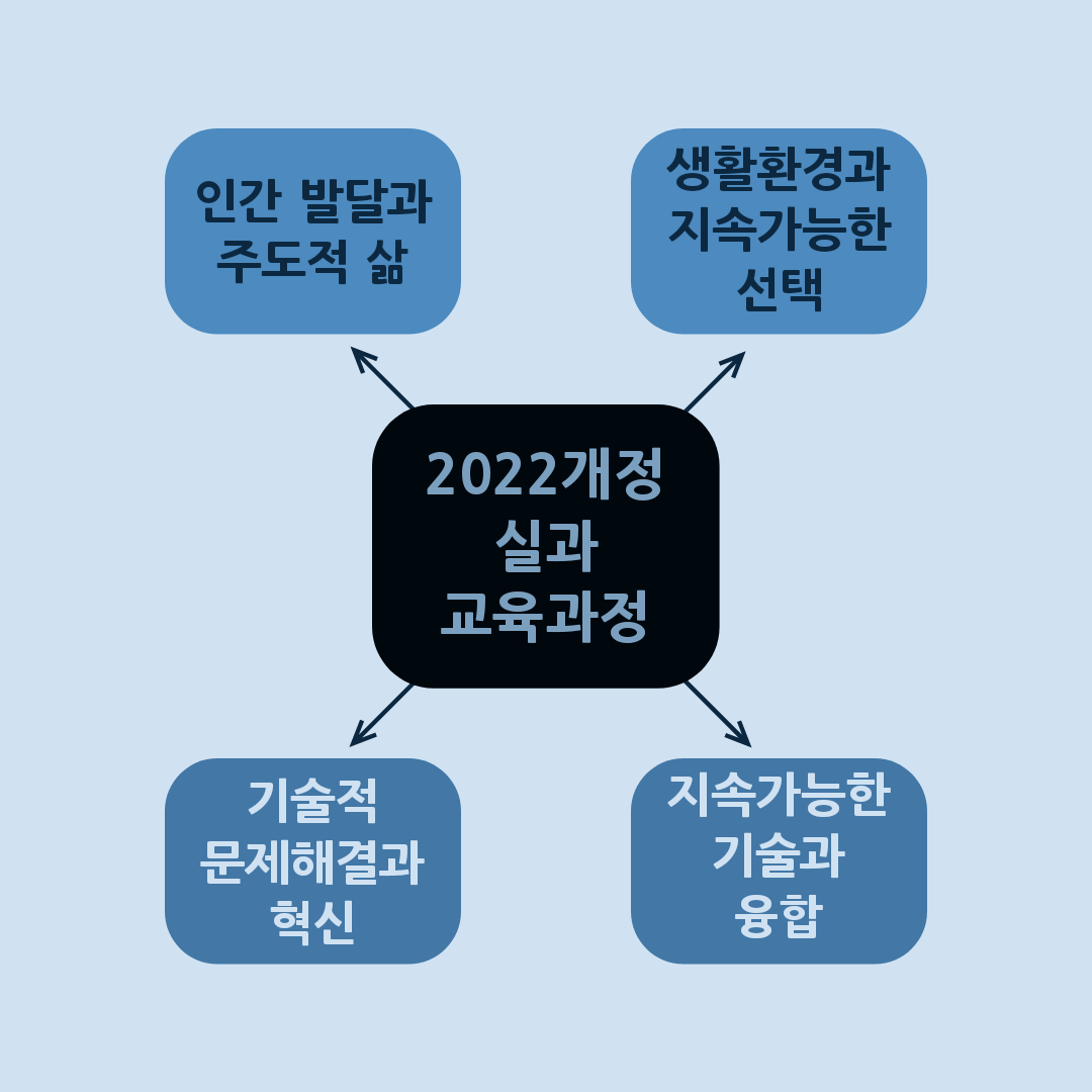 참고 이 글은 2022개정 실과 교육과정의 '교육과정 설계의 개요'를 다루고 있습니다. 2022개정 시기에도 2015개정 실과 교과역량 흔적이 남아있다는 점, 2022개정 시기에 들어서면서 바뀐 영역명을 중심으로 살펴봅시다.