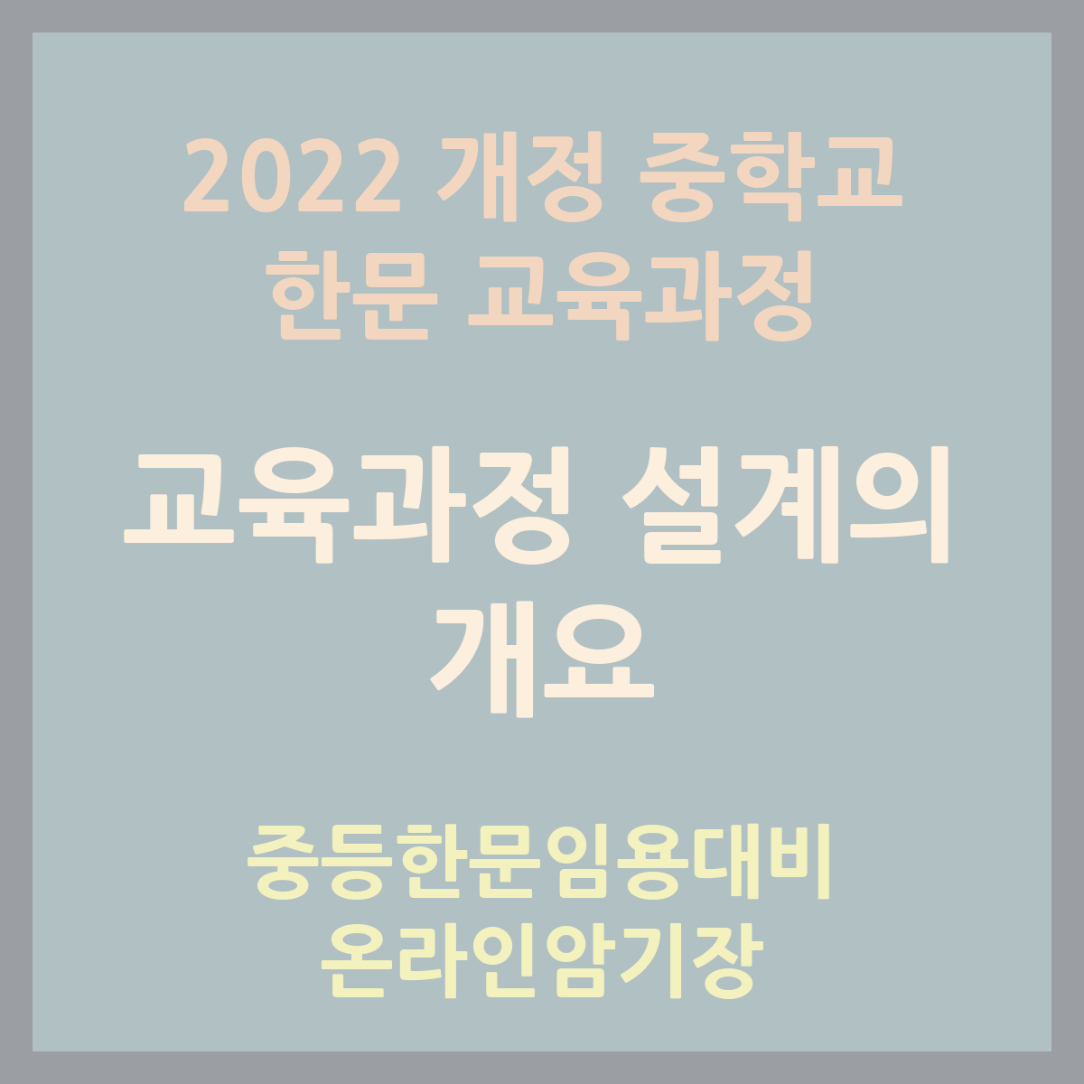 | 2022개정 한문과 교육과정 - 중학교 성격 및 목표 (중등한문임용 대비 온라인암기장) (1) | 2025.01.20 |