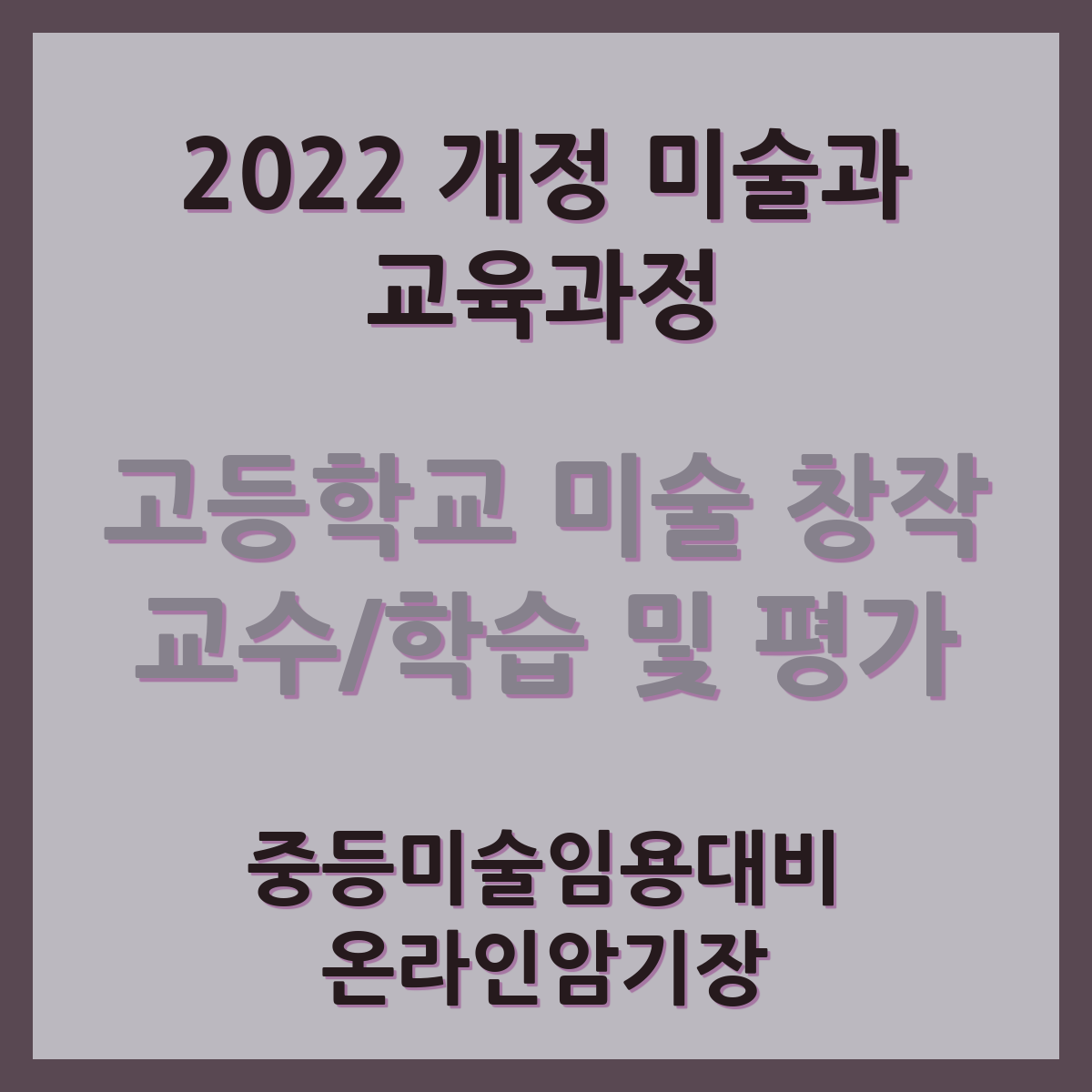 | 미술 창작 성격 및 목표 | 중등미술임용 빈칸연습 온라인암기장 (0) | 2025.03.09 |