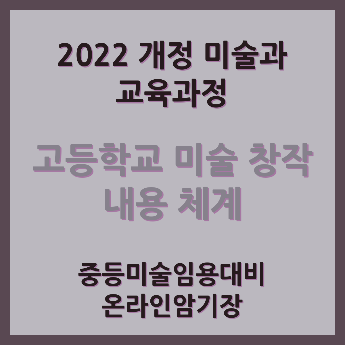| 미술 창작 성격 및 목표 | 중등미술임용 빈칸연습 온라인암기장 (0) | 2025.03.09 |