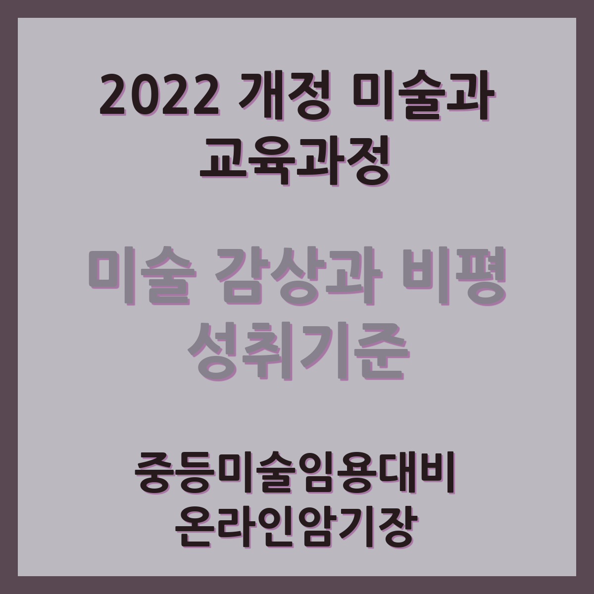 | 미감비 미술감상과비평 성격 및 목표 빈칸연습 | 중등미술임용 대비 온라인암기장 (0) | 2025.03.20 |