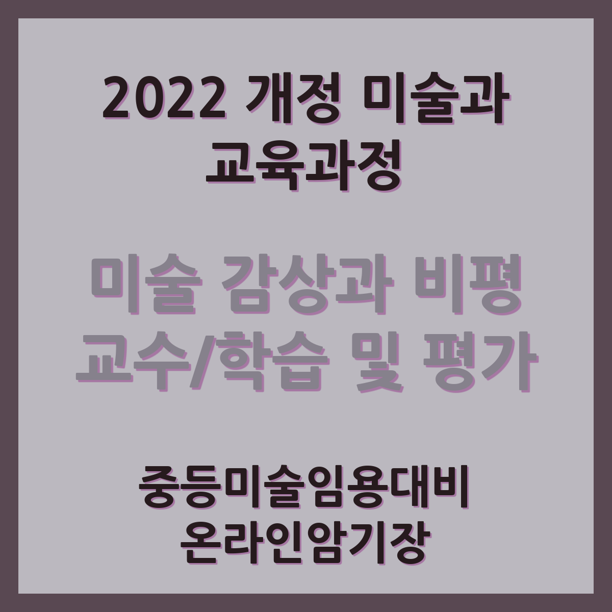| 미감비 미술감상과비평 성격 및 목표 빈칸연습 | 중등미술임용 대비 온라인암기장 (0) | 2025.03.20 |
