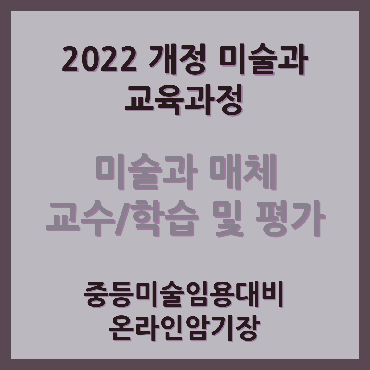 | 미술과 매체 성격 및 목표 (중등 미술임용 대비, 2022개정) (0) | 2025.04.02 |