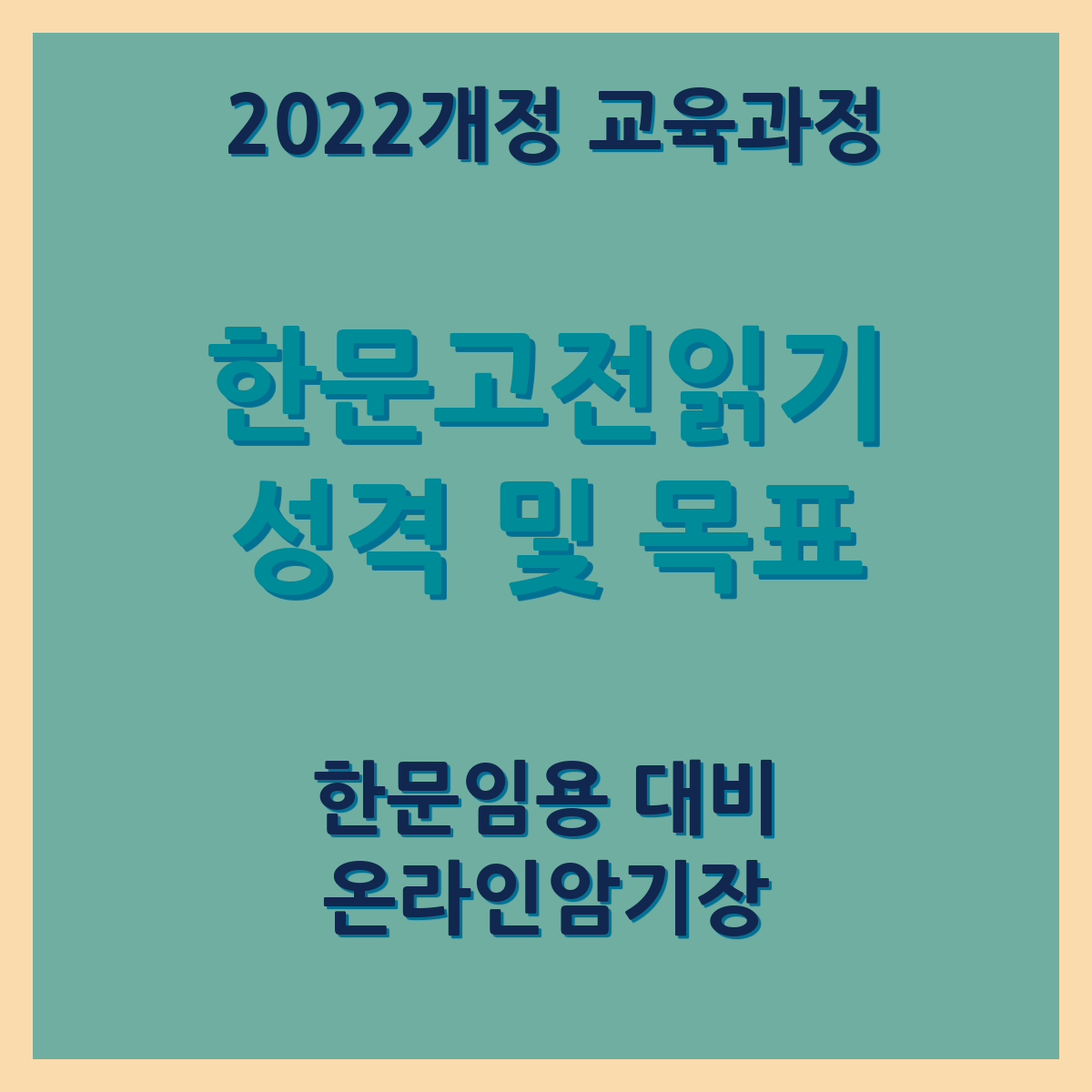 고등학교 '한문 고전 읽기'는 한자와 한문에 대한 지식을 익혀 기초적인 한문 자료를 이해하고, 이를 통해 변화하는 사회에 필요한 역량과 인성을 함양하며, 한자 문화권의 문화에 대한 이해와 교류 증진에 참여하고자 하는 태도를 갖추고, 진로 탐색에 활용하는 데 중점을 둔다.