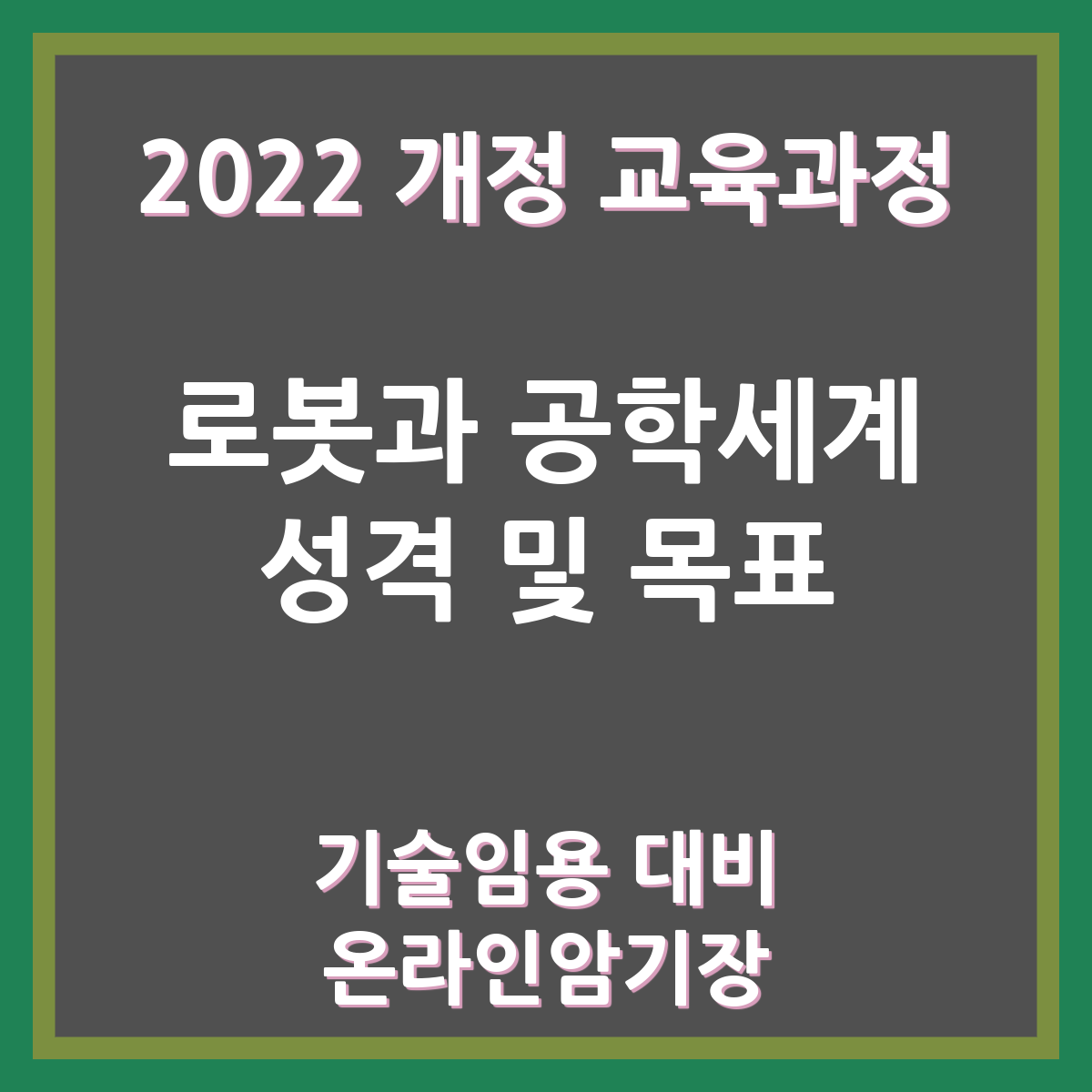 '로봇과 공학세계'는 고등학교 1~3학년에 해당하는 진로선택 과목으로서 초등학교 '실과' 및 중학교 '기술/가정' 교과, 고등학교 '기술/가정, 창의 공학 설계, 지식 재산 일반' 교과 간의 연계와 함께 다양한 기술 분야의 지식과 기술적 문제해결 과정, 설계와 제작 활동 등의 교과 내 연계를 함께 고려한 과목이다. 특히 '로봇과 공학세계'는 과학, 수학, 정보 등 다양한 과목의 기초 지식을 활용하여 기술에 대한 내용과 수준을 심화/확장하고 여러 가지 기술과 공학이 융합된 대표적 사례인 로봇을 이해하고 설계 및 제작하며 로봇 관련 문제를 해결하고 동시에 로봇 관련 공학의 세계에 대한 다양한 진로를 탐색하는 기회를 제공하는 과목이다.