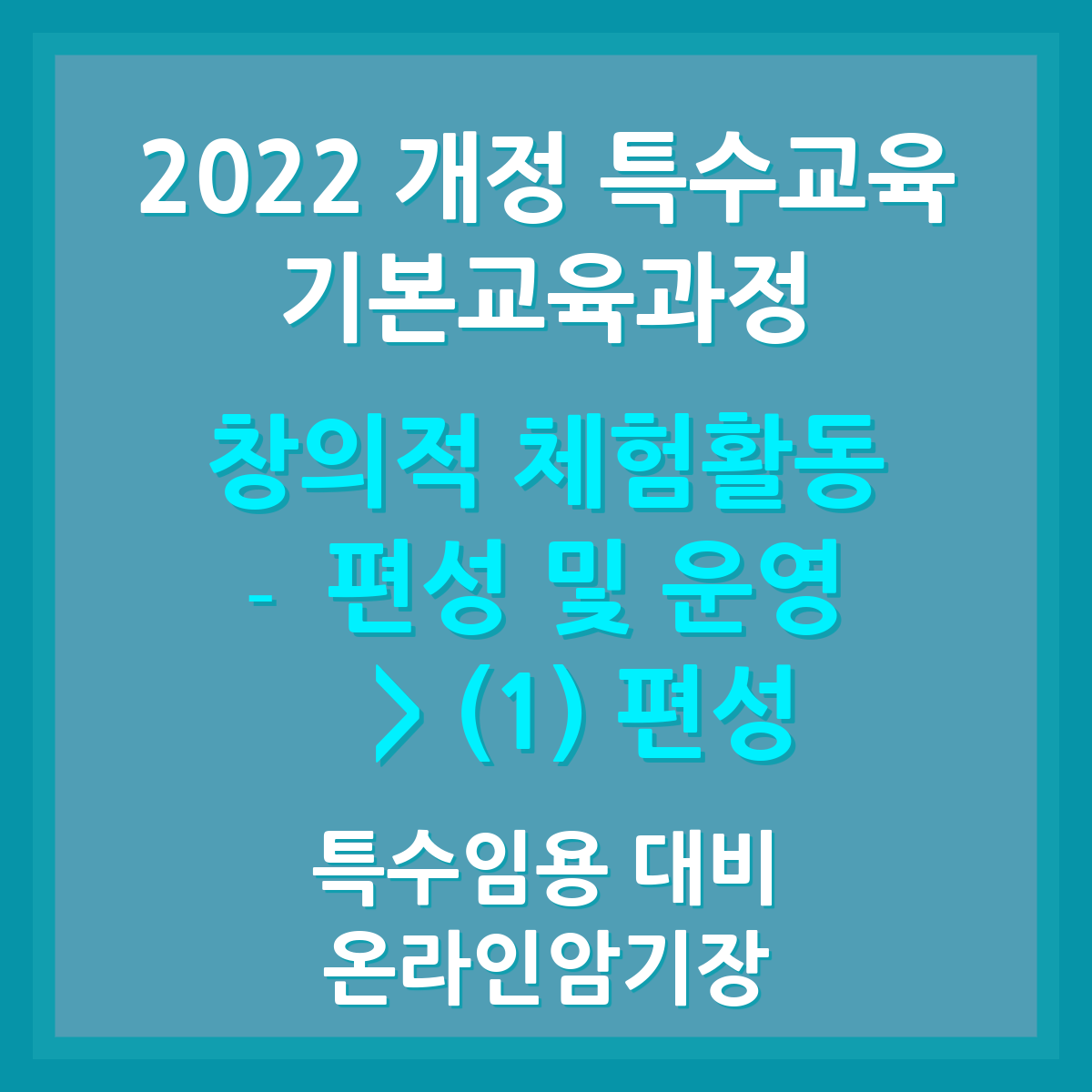 | 특수임용 대비) 창의적 체험활동 - 교육과정 설계의 개요 | 2022개정 교육과정 온라인암기장 (0) | 2025.10.22 |
